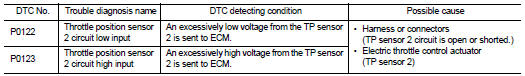 Nissan Altima (L32) 2007-2012 Service Manual: P0122, P0123 TP sensor