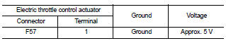 3. Check the voltage between electric throttle control actuator harness connector and ground.