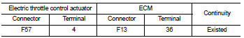 1. Check the continuity between electric throttle control actuator harness connector and ECM harness connector.