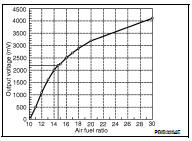 To judge malfunctions, the diagnosis checks that the A/F signal computed by ECM from the A/F sensor 1 signal fluctuates according to fuel feedback control.