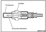 Therefore, the A/F sensor 1 is able to indicate air fuel ratio by this electrode layer of current. In addition, a heater is integrated in the sensor to ensure the required operating temperature of approximately 800°C (1,472°F).