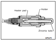 This sensor is made of ceramic zirconia. The zirconia generates voltage from approximately 1V in richer conditions to 0V in leaner conditions.