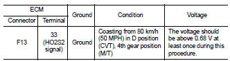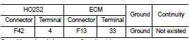 2. Check the continuity between HO2S2 harness connector or ECM harness connector and ground.