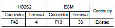 4. Check the continuity between HO2S2 harness connector and ECM harness connector.
