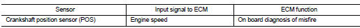 When a misfire occurs, engine speed will fluctuate. If the engine speed fluctuates enough to cause the crankshaft position (CKP) sensor (POS) signal to vary, ECM can determine that a misfire is occurring.