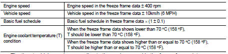 2. Start engine and drive the vehicle under the similar conditions to (1st trip) Freeze Frame Data for a certain time. Refer to the table below.
