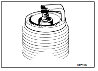 2. Crank engine for about 3 seconds, and recheck whether spark is generated between the spark plug and the grounded portion.