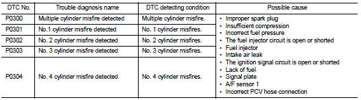 Nissan Altima (L32) 2007-2012 Service Manual: P0300, P0301, P0302, P0303, P0304 Misfire