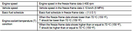 2. Start engine and drive the vehicle under the similar conditions to (1st trip) Freeze Frame Data for a certain time. Refer to the table below.