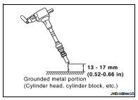 3. Crank engine for about 3 seconds, and recheck whether spark is generated between the spark plug and the grounded metal portion.