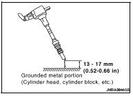 11. Crank engine for approximately 3 seconds, and check whether spark is generated between the spark plug and the grounded metal portion.