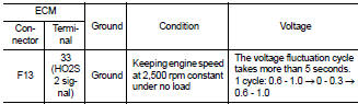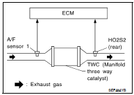 The ECM monitors the switching frequency ratio of air fuel ratio (A/F) sensor 1 and heated oxygen sensor 2.