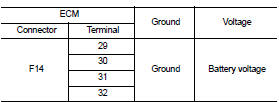 6. Check the voltage between ECM harness connector and ground under the following condition.