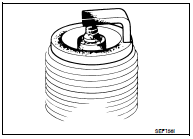 2. Crank engine for about three seconds, and recheck whether spark is generated between the spark plug and the grounded portion.