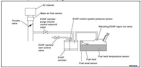 Check EVAP purge line (pipe, rubber tube, fuel tank and EVAP canister) for cracks or improper connection.
