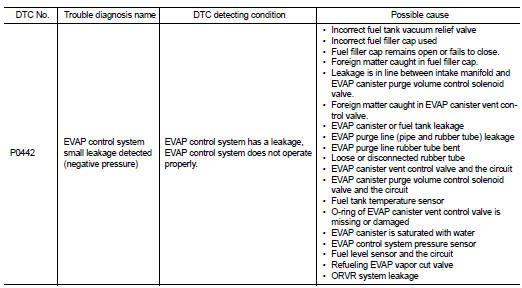 Nissan Altima (L32) 2007-2012 Service Manual: P0442 Evap control system