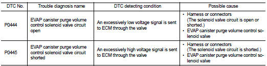 Nissan Altima (L32) 2007-2012 Service Manual: P0444, p0445 evap canister purge volume control solenoid valve