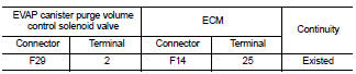 • Harness for open or short between EVAP canister purge volume control solenoid valve and ECM