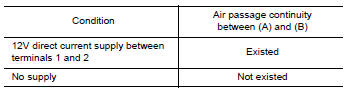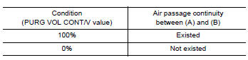 4. Check air passage continuity of EVAP canister purge volume control solenoid valve under the following conditions.