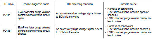 Nissan Altima (L32) 2007-2012 Service Manual: P0444, P0445 Evap canister purge volume control solenoid valve