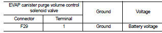 4. Check the voltage between EVAP canister purge volume control solenoid valve harness connector and ground.