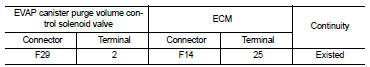 • Harness for open or short between EVAP canister purge volume control solenoid valve and ECM
