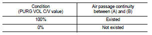 4. Check air passage continuity of EVAP canister purge volume control solenoid valve under the following conditions.