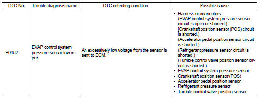 Nissan Altima (L32) 2007-2012 Service Manual: P0452 evap control system pressure sensor