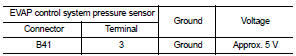 2. Check the voltage between EVAP control system pressure sensor harness connector and ground.