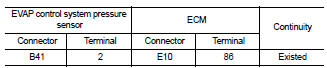 3. Check the continuity between EVAP control system pressure sensor harness connector and ECM harness connector.