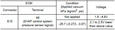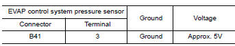 2. Check the voltage between EVAP control system pressure sensor harness connector and ground.