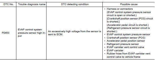 Nissan Altima (L32) 2007-2012 Service Manual: P0453 evap control system pressure sensor
