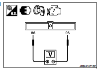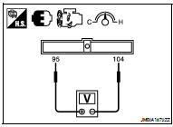 4. Turn ignition switch ON and check output voltage between ECM terminals under the following conditions.