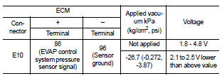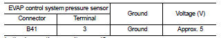 2. Check the voltage between EVAP control system pressure sensor harness connector and ground.