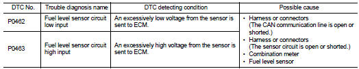 NOTE: • If DTC P0462 or P0463 is displayed with DTC UXXXX, first perform the trouble diagnosis for DTC UXXXX.Refer to EC-1179, "DTC Logic".
