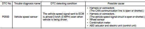 NOTE: • If DTC P0500 is displayed with DTC UXXXX, first perform the trouble diagnosis for DTC UXXXX.