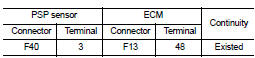 3. Check the continuity between PSP sensor harness connector and ECM harness connector.