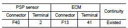 1. Check the continuity between PSP sensor harness connector and ECM harness connector.