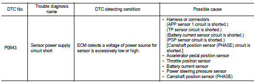 Nissan Altima (L32) 2007-2012 Service Manual: P0643 Sensor power supply
