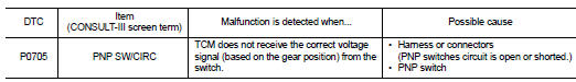 Nissan Altima (L32) 2007-2012 Service Manual: P0705 park/neutral position switch