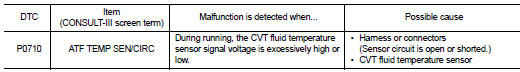 Nissan Altima (L32) 2007-2012 Service Manual: P0710 CVT fluid temperature sensor