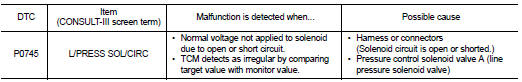 Nissan Altima (L32) 2007-2012 Service Manual: P0745 line pressure solenoid valve