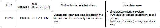 Nissan Altima (L32) 2007-2012 Service Manual: P0746 pressure control solenoid a performance (line pressure solenoid valve)
