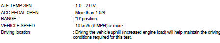 3. Start engine and maintain the following conditions for at least 10 consecutive seconds. Test start from 0 km/h (0 MPH).