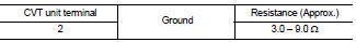 Check resistance between CVT unit terminal 2 and ground.