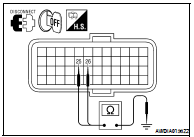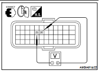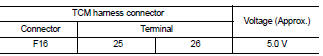 2. Check voltage between TCM harness connector F16 terminals 25 and 26.