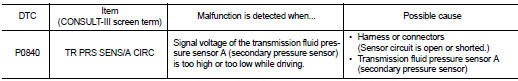 Nissan Altima (L32) 2007-2012 Service Manual: P0840 transmission fluid pressure sensor A (sec pressure sensor)