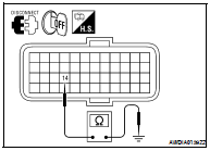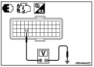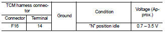 2. Check voltage between TCM harness connector F16 terminal 14 and ground.
