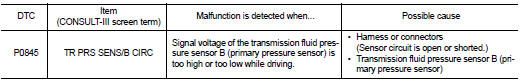 Nissan Altima (L32) 2007-2012 Service Manual: P0845 transmission fluid pressure sensor B (pri pressure sensor)