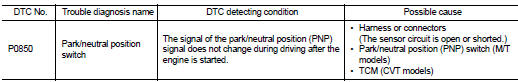 Nissan Altima (L32) 2007-2012 Service Manual: P0850 PNP Switch